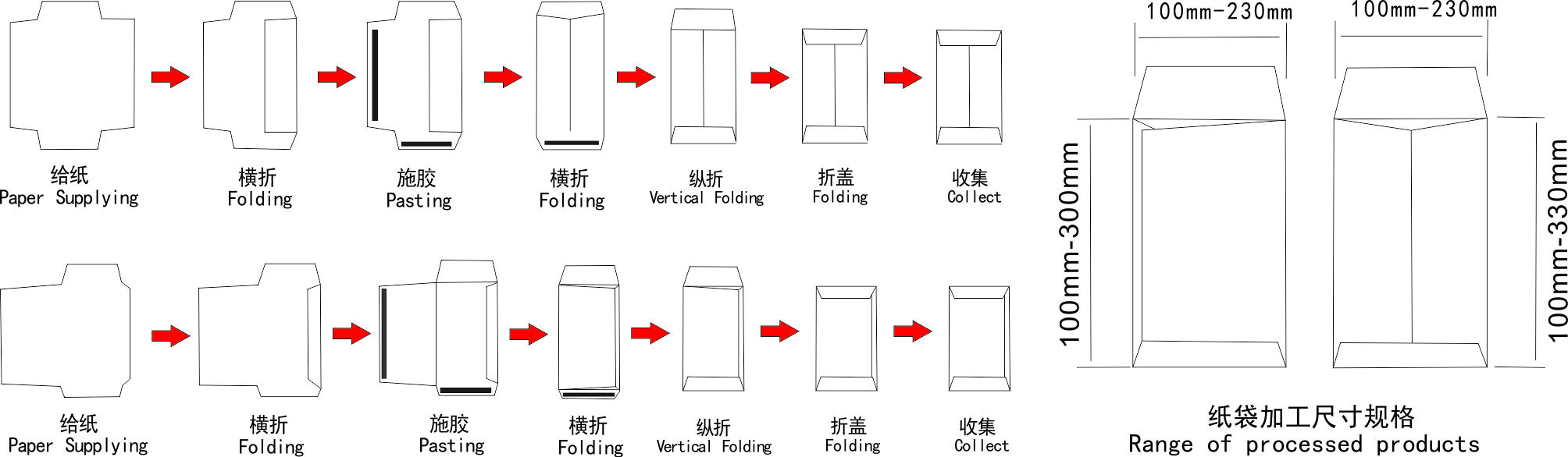 加工信封規格Envelope's sepcification: ..................... 100×100-230X330mm(中式)